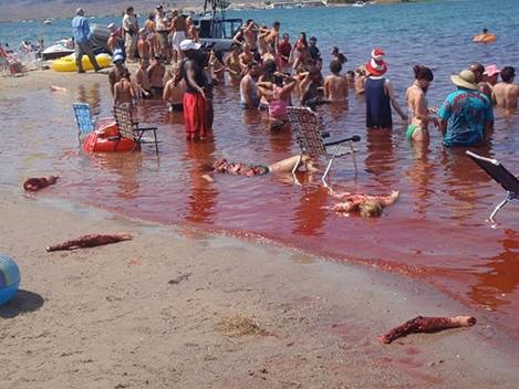 در ادامه عکس هایی از حمله این ماهی به سواحل آمریکا نمایش داده خواهد شد .
